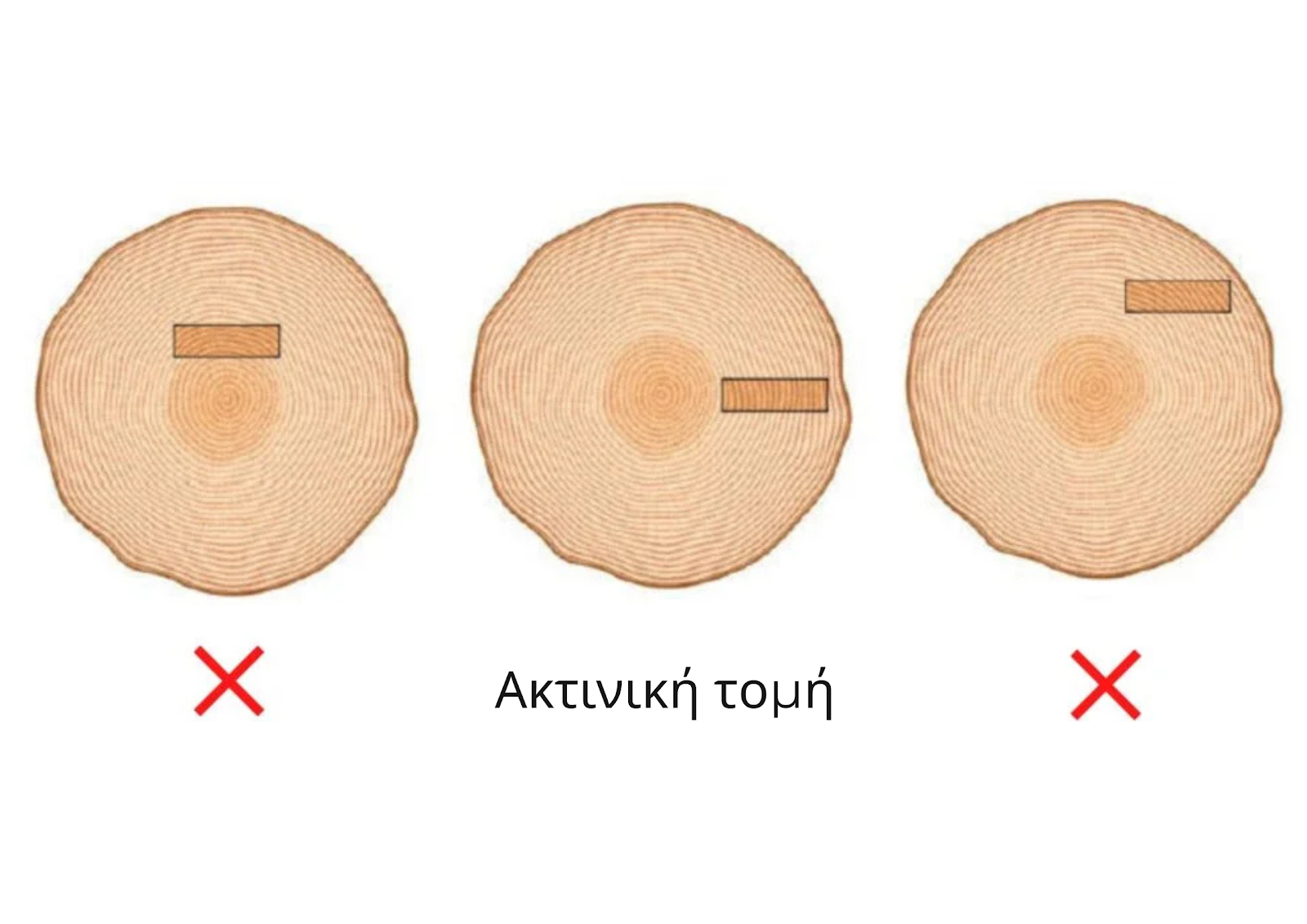 Για να αποφευχθούν φθορές αυτού του είδους, είναι απαραίτητο η σανίδα, όπως αναφέραμε παραπάνω, να κοπεί έτσι ώστε οι ετήσιοι δακτύλιοι να κατευθύνονται ακτινικά ή κάθετα σε σχέση με την πρόσοψη και την πίσω όψη του προφίλ: